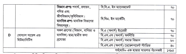 - C & D ইউনিট: SSC + HSC মোট GPA ≥ 6.00 (প্রতিটিতে ন্যূনতম 3.00)